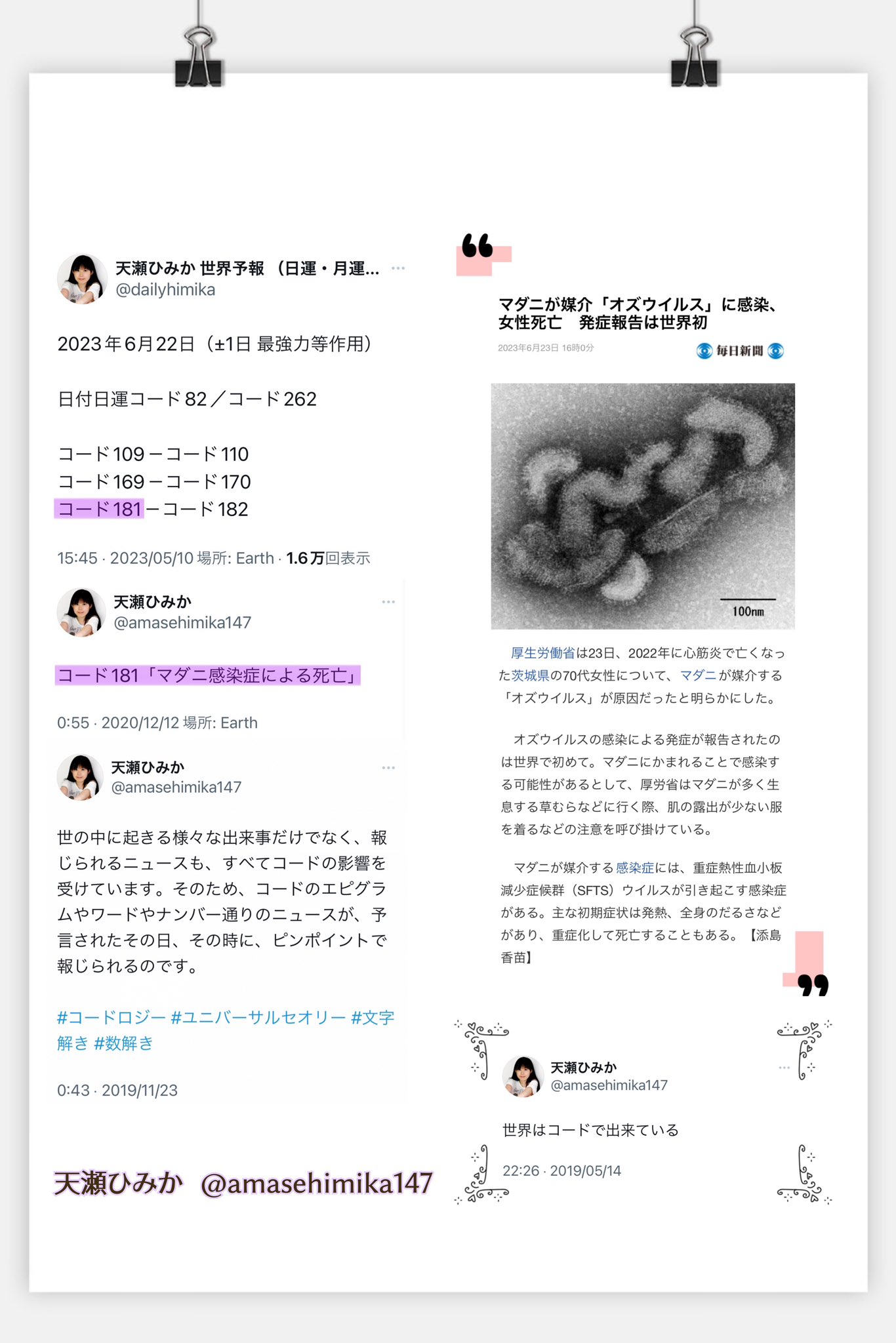 Nana ᴗ ദ On X マダニが媒介 オズウイルス に感染 女性死亡 発症報告は世界初 厚生労働省は23日 2022年に心筋炎で亡くなった茨城県の70代女性について マダニが媒介する オズウイルス が原因だったと明らかにした 6月23日 日運 コード181